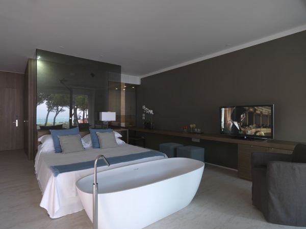 Ampliamento e ristrutturazione di un hotel esistente con adduzione e progettazione della piscina e delle aree annesse. Il nuovo corpo, proiettato verso la pineta e il mare, ospita alcune suite in cui le funzioni del riposo e della cura di sé sono perfettamente integrate in uno spazio minimale e rigoroso, aperto totalmente verso il verde e la spiaggia. Atmosfera romantica dove l’attenzione per il particolare trasmette una profonda sensazione di assoluto relax.