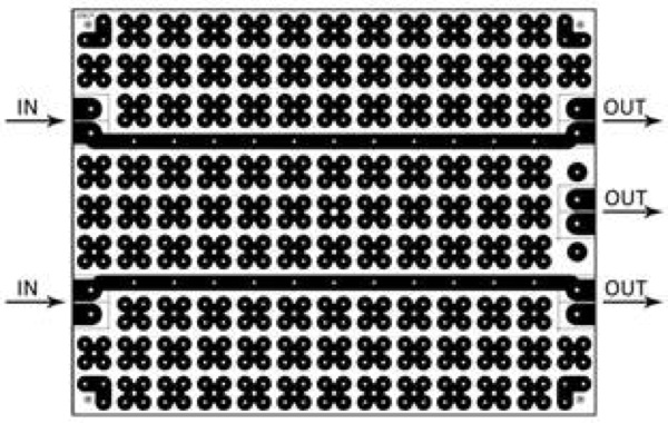 Ha il grande vantaggio di avere già predisposto una pista di connessione tra il negativo d’ingresso e di uscita semplificando notevolmente la realizzazione del filtro crossover ed eliminando la difficoltà di dover creare tale connessione.