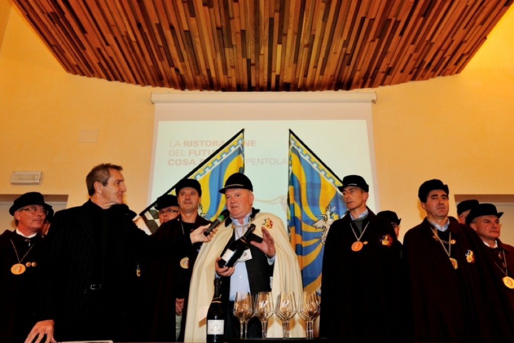 Un dibattito acceso e stimolante con un pubblico attento e proveniente da tutto il triveneto, seguito dalla solenne Stappatura della Bottiglia della Confraternita 2012, momento suggestivo che ha suggellato il successo di una serata coinvolgente e ha rinnovato la passione e lo spirito di cui si anima il settore del wine&food italiano.