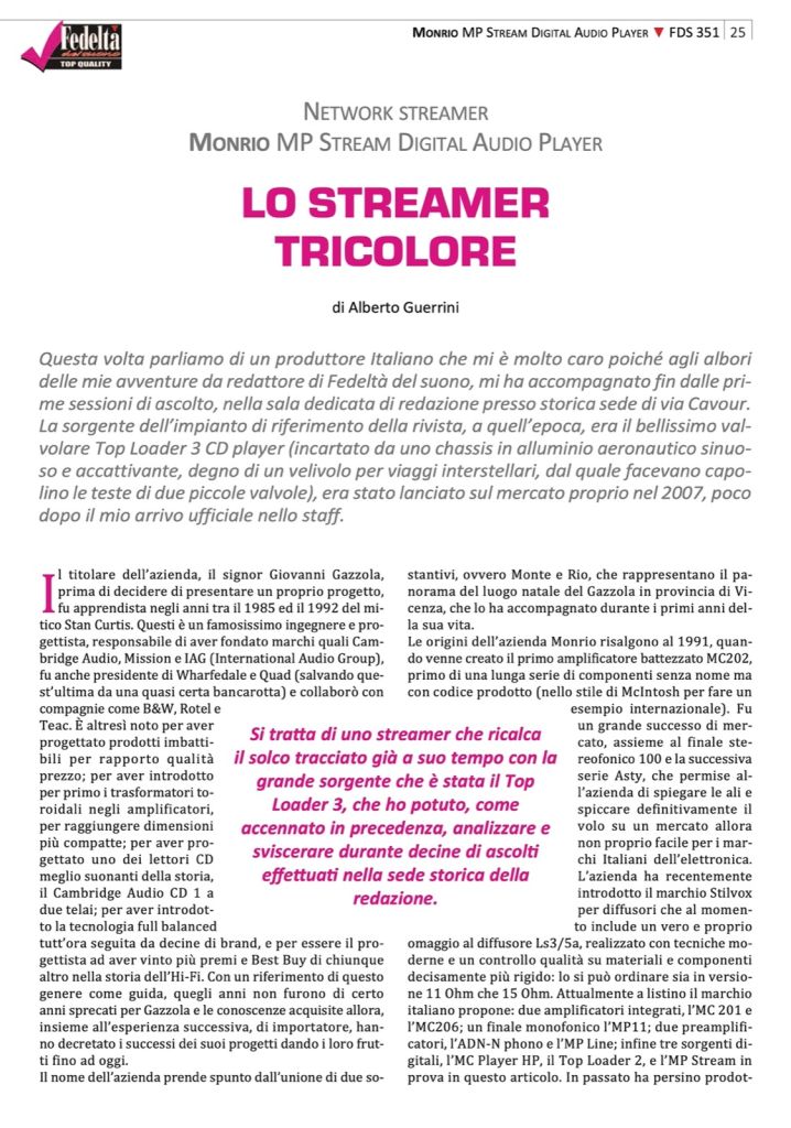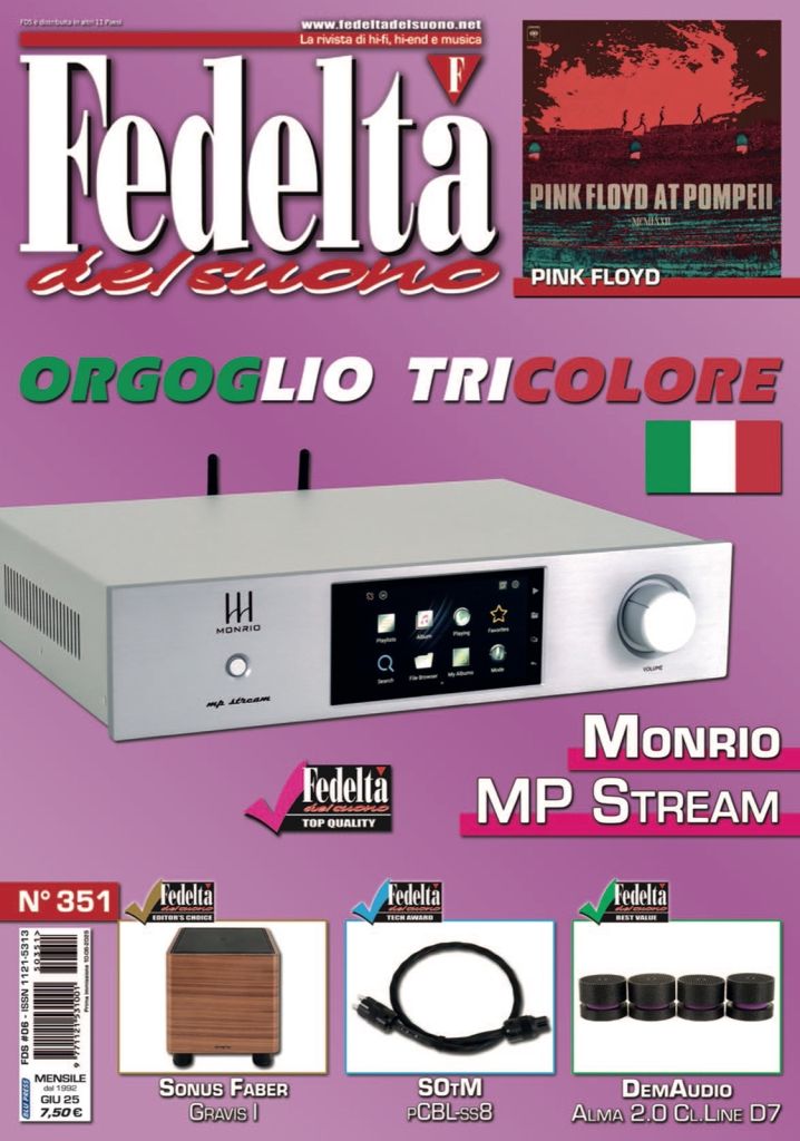 In Fedeltà del Suono troverete un prodotto italiano davvero al top: l’MP Stream di Monrio, uno streamer di rete DAP dal prezzo interessante e dalle prestazioni “Monrio”. Insieme a lui, altri prodotti diversi tra loro: il subwoofer Gravis I della Sonus faber, il nuovo cavo di alimentazione della coreana SOtM e gli smorzatori ad alte prestazioni della DemAudio, orgogliosamente italiana. Aspetto i vostri commenti.