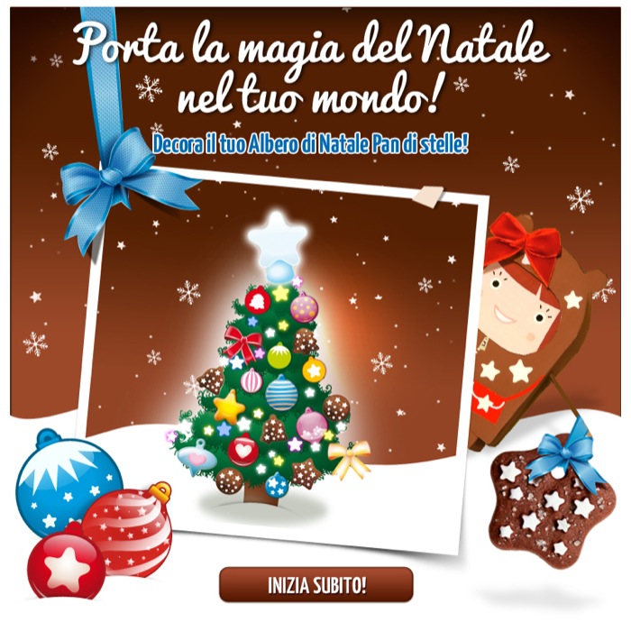 Il magico Natale di Pan di Stelle ritorna quest’anno sulla pagina Facebook del brand per coinvolgere ed appassionare i suoi numerosissimi fan: con la nuova applicazione creata dalla marca per Natale, sarà possibile decorare il proprio albero di Natale digitale firmato Pan di Stelle e scambiarsi dolci auguri virtuali con i propri amici su Facebook.