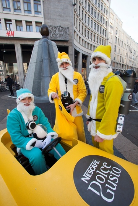 A Milano arrivano i Babbi Natale futuristi. Al posto della tradizionale slitta, i Santa Klaus saranno a bordo di un originale sottomarino e muniti di razzi propulsori, ed imperverseranno per le vie del centro della città. Non solo, il loro vestito abbandonerà il tradizionale colore rosso, per essere sostituito da colori sgargianti e non convenzionali, come il giallo, il celeste, il verde. In sintesi, saranno colorati, esuberanti, chiassosi. Una vera e propria creazione dal sapore “artistico”, voluta da Nescafé Dolce Gusto, leader mondiale dei sistemi multibeverage, che invaderà le vie del centro di Milano, capitale mondiale del movimento generato da Russolo, Marinetti, Balla, Boccioni, Severini e Carrà, solo per fare qualche nome.